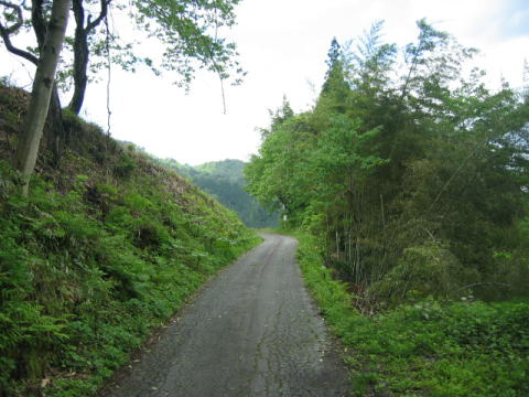 | L 石垣付きのカーブがあります。 | M 途中途中に民家が・・・(妻籠方向をみています) |