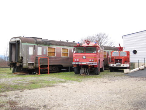 | P 貨物用駅舎に展示されている旅客車両と消防車。 | Q ディボンヌ側から駅構内をみてみました。 |