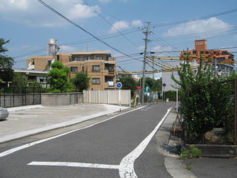 | L Kの反対側。駐車場になっています。 | M Lから少し終点側に行った所。マンションや駐車場が変な形になっている。暑くて車内から撮影・・・手抜きです。 |