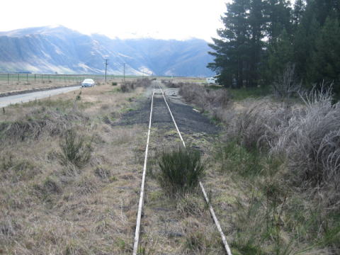 | D フェアライト駅構内からキングストン方向をみる。 | E フェアライトからガーストン(Garston)方向を見た写真。レールの切れた先にマタウラ川がある。 |