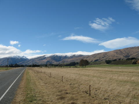 | @ ガーストン(Garston)駅から少し南下した所にあった築堤跡。個人農地の一部化している。NZは多くの廃線跡が個人所有地内にあるのでアクセスするのがちょっと大変。 | A 国道を併走する築堤跡(左) |