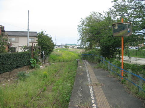 4.駅の北面。ホームは島式1面2線で、もう1路線貨物用であったようだ。軽乗用車の位置は貨物線跡。 |