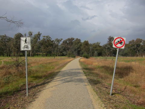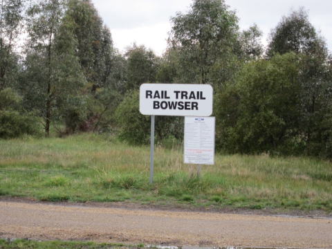 | F 今の駅舎もどき!昔はここにちゃんとしたのがあったようだ。 | G 右にカーブしていく軌道跡。この先ロンドリガン(Londrigan)、タウラウィンギー(Tarrawingee)の駅跡があるハズだが、時間の都合上とトレイル化し遺構が望めない事から探訪していない。 |