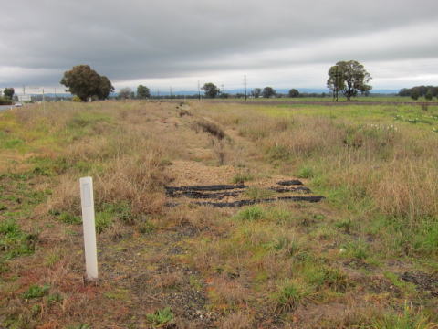 | @ 簡単マップです。このページでは Bowser から Everton までを取り上げています。 | A Vライン北東線から分岐した廃線跡。中央左から手前方向にカーブしてきています。背後にVライン線があります。 |