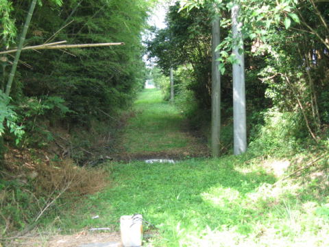 | @ 一般道のバイパスに寸断された廃線跡。 | A 「ゆめたろうプラザ」方をみています。しずかな路線の雰囲気ですねぇ〜、なんだか日本語がおかしい。 |