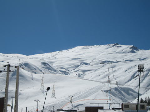 Q イレギュラーで泊まったテヘランの高級ホテルからアルボルス山脈を見た図。この方向トチャルというスキー場があるそうな・・・ |