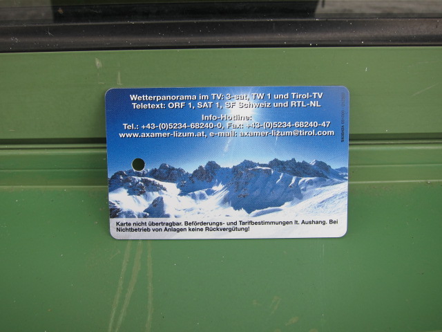 | ① スキーパスです。 アクサマーとムッタラーと共通パス(36€)です。デザインがイマイチ! |