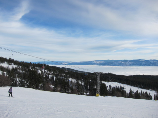 | ⑤ ケロウナとオカナガン湖が雲海に覆われています。 |