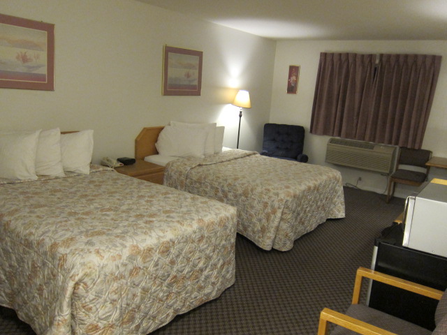 番外編4 カナダ1日目の宿泊先は、カムループスのカントリービューモーターインという所。受付の人の弾丸イングリッシュには2、3回ゆっくりお願いと言ったけど・・・ |