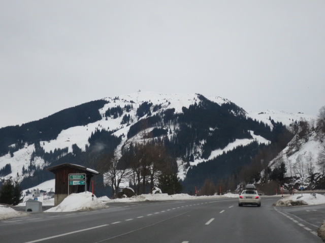 | 番外編5 帰りの道中にあるスキー場。ここは有名なキッツビューエルのパス・トゥルンエリア。なんと雨です!!えらい時代です。 |
